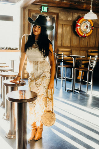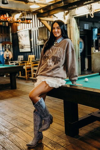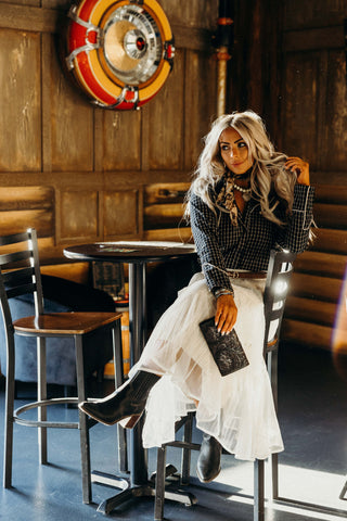 When the lights rise and the dust turns to gold — the second round embodies the thrill of the main event. Designed for long evenings under the Vegas glow, this collection blends western heritage with elevated glamour. Bold, refined, and made for the cowgirls who shine when the spotlight hits.