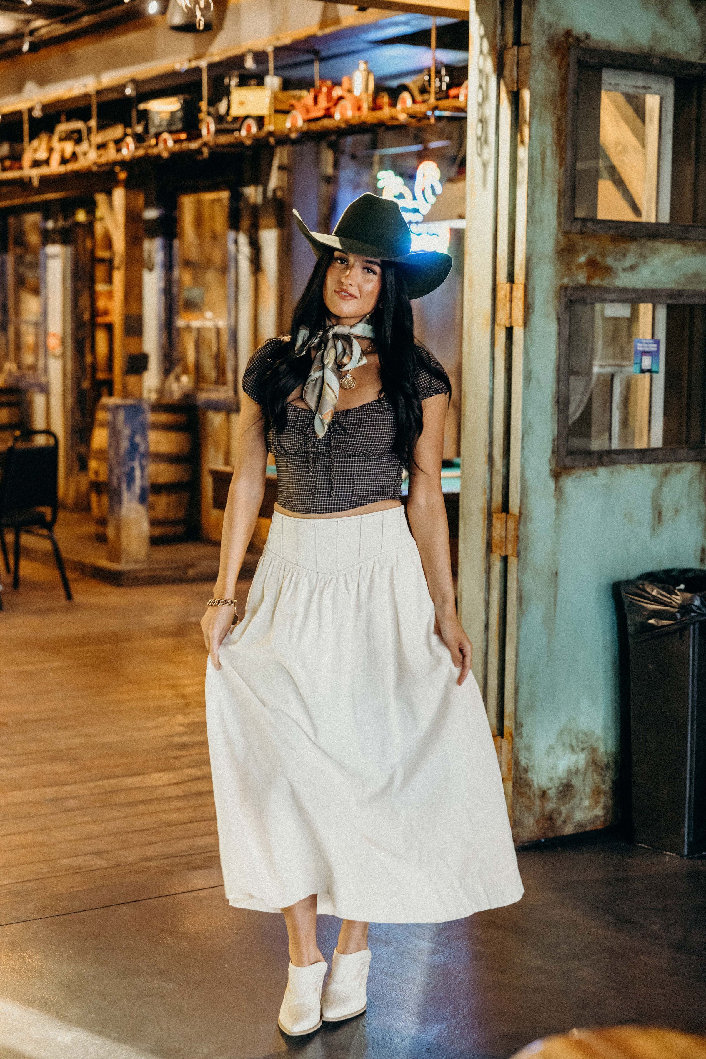 Add a touch of whimsical charm to your wardrobe with the Shay Skirt. Featuring a stitched yoke and smocked back waistband, it offers a comfy, flexible fit. The gathered skirt creates lovely volume, perfect for twirling through your day. Plus, handy side pockets keep your essentials close at hand—all in a fresh ivory hue that’s easy to pair and hard to resist.