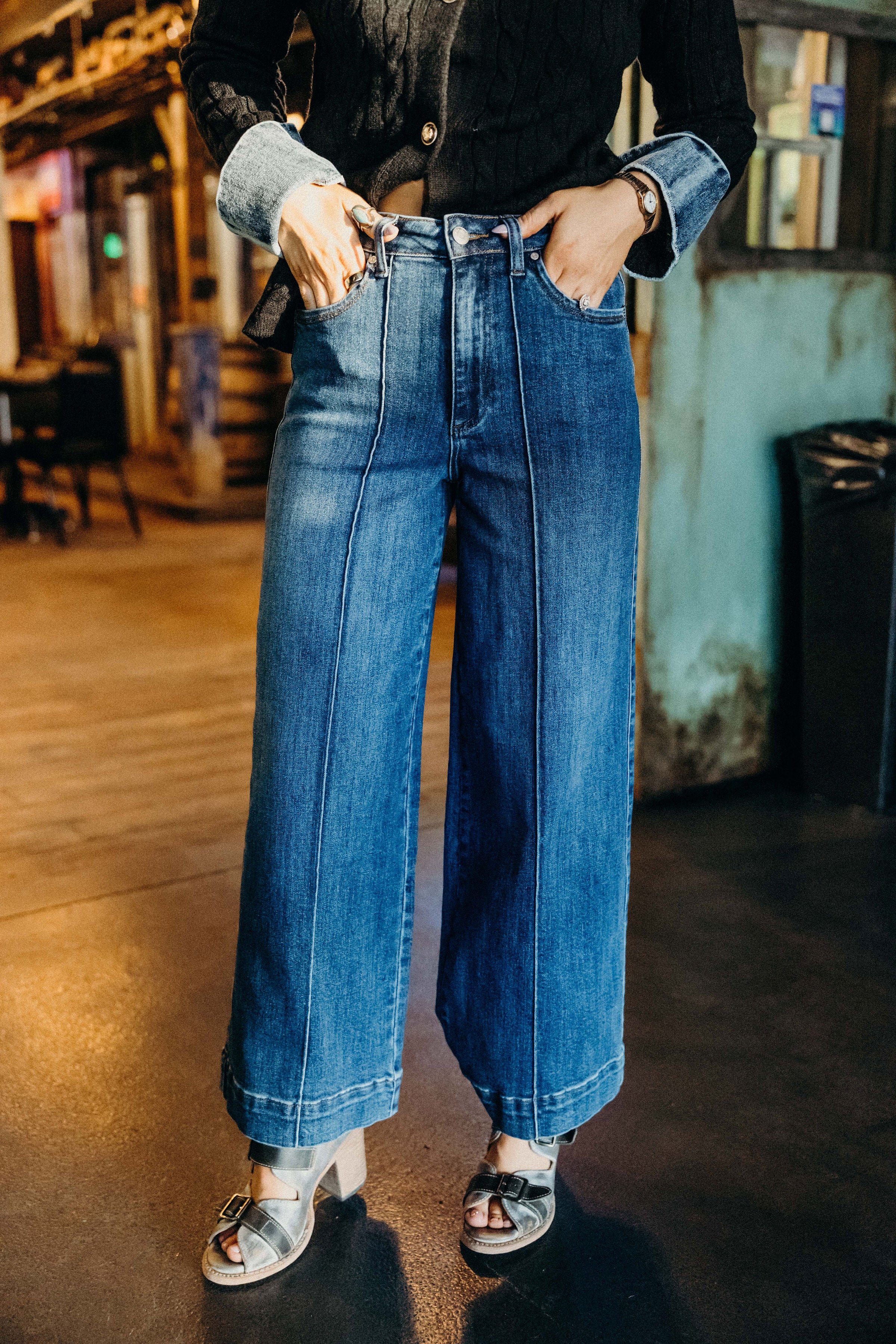 The Odalie Jeans combine classic western style with modern comfort. Crafted from medium wash stretch denim, these high-rise jeans feature a flattering wide leg and slightly cropped length for a contemporary edge. Pin tuck detailing adds subtle sophistication, making them perfect for both casual outings and dressed-up looks. Experience effortless style and all-day comfort with The Odalie Jeans.