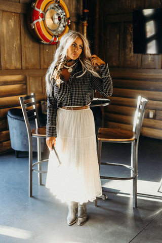 When the lights rise and the dust turns to gold — the second round embodies the thrill of the main event. Designed for long evenings under the Vegas glow, this collection blends western heritage with elevated glamour. Bold, refined, and made for the cowgirls who shine when the spotlight hits.