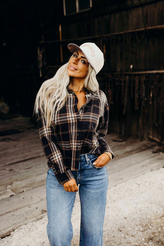 Wrap up in warmth this season with Cozy Cowgirl, a collection made for slow mornings, snowy drives, and nights by the fire. Soft flannels, chunky knits, and easy layers bring comfort to your everyday western style. Whether you’re at the ranch or curled up at home, these pieces keep you feeling cozy, classic, and effortlessly cowgirl.
