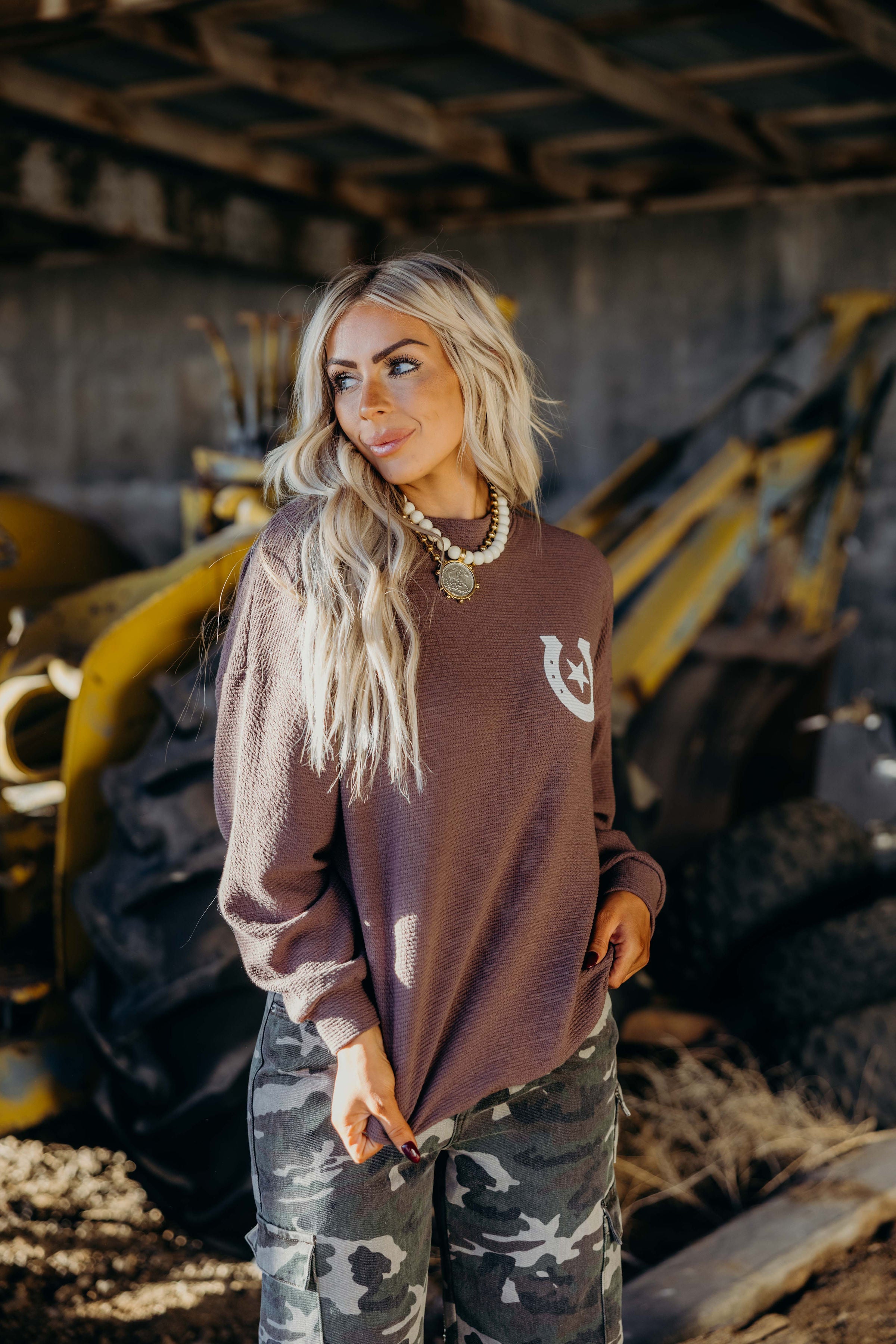 Saddle up in this cozy brown western graphic sweatshirt that brings laid-back charm to your everyday wardrobe. Featuring a bold horseshoe graphic on the front and a friendly "HOWDY" print on the back, it's perfect for showing off your western spirit. The oversized fit wraps you in comfort, making it ideal for relaxed days at home or casual outings with friends. Whether you're a true cowgirl at heart or just love the aesthetic, this sweatshirt delivers both style and the comfort you deserve.