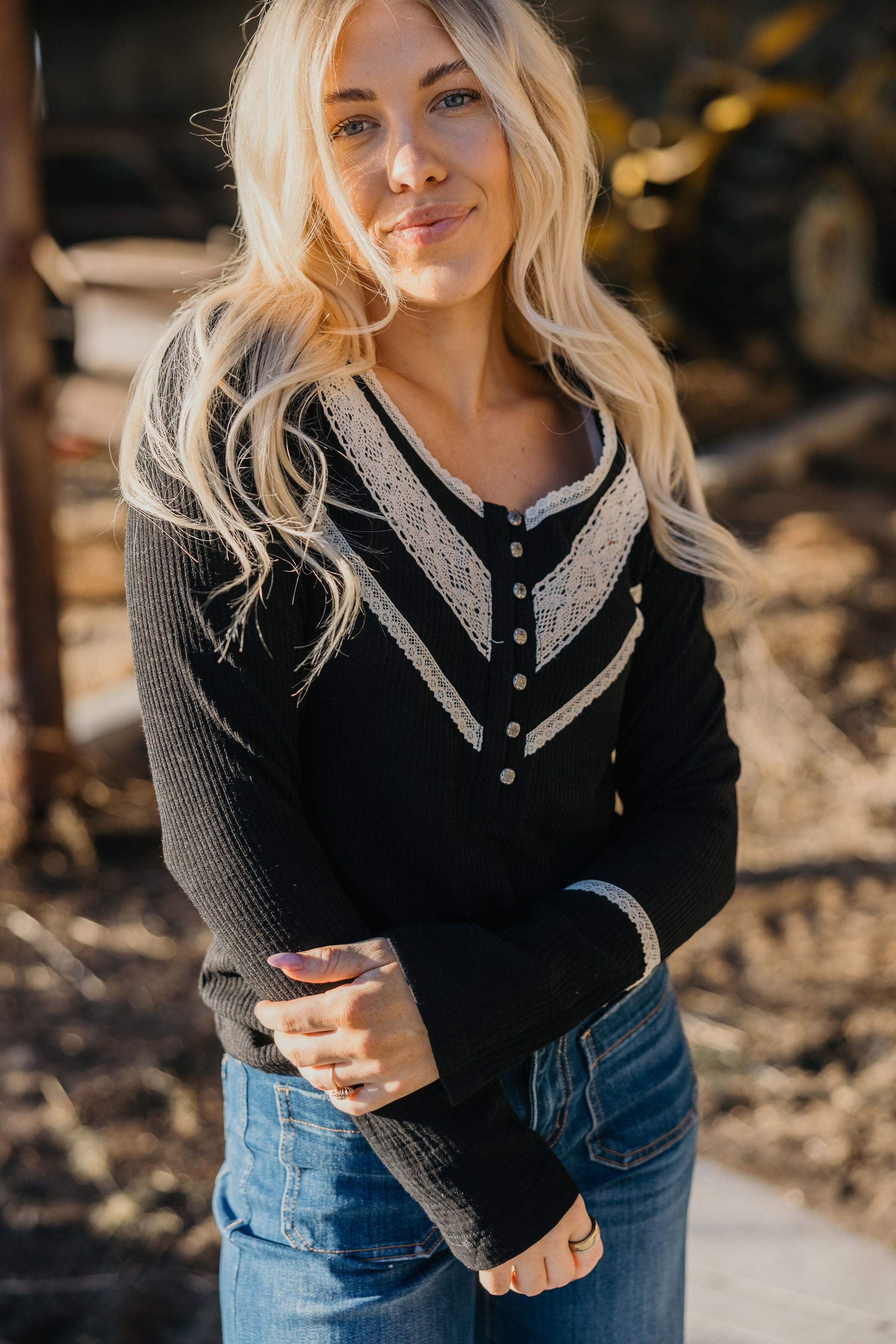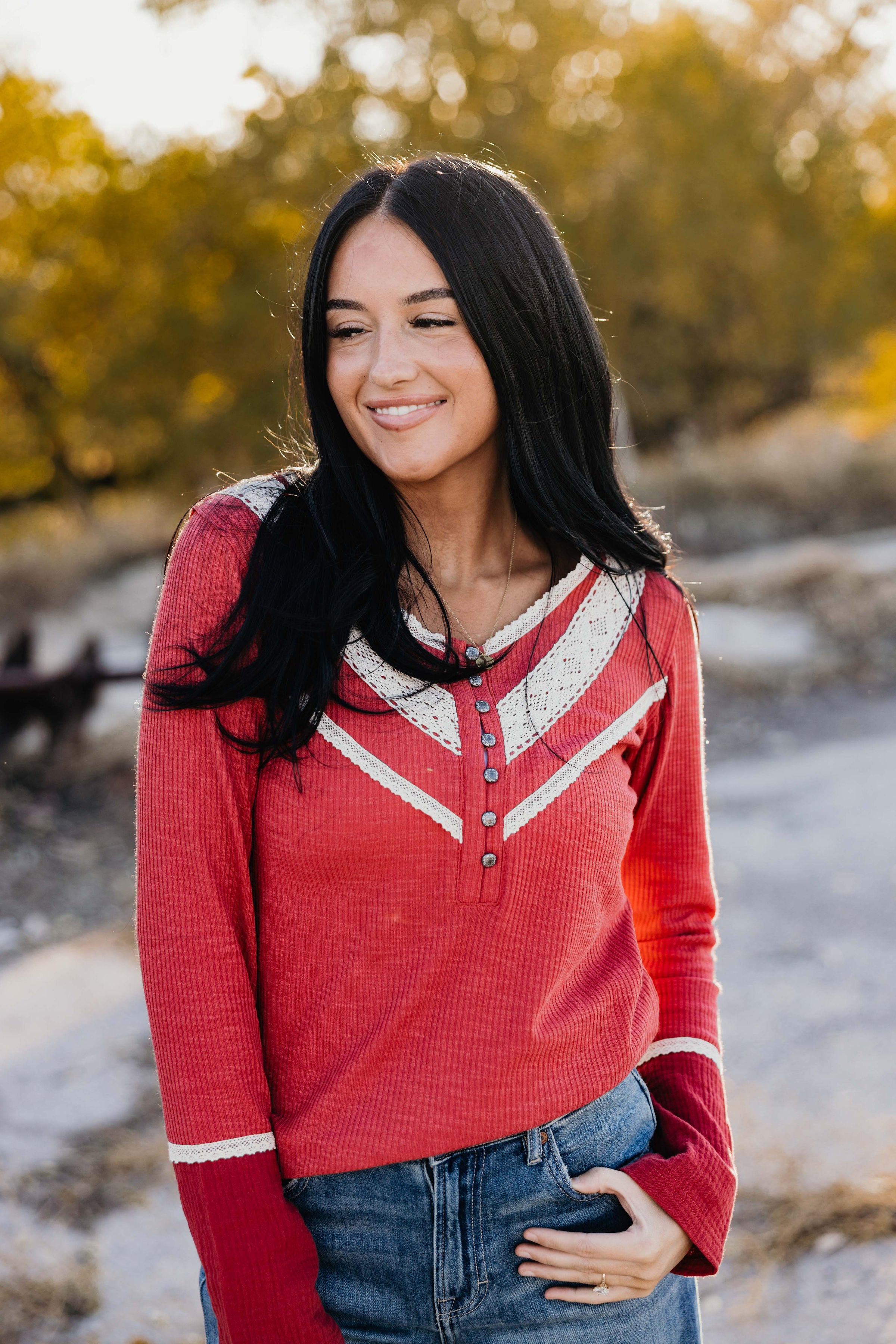 The Wrenlee long sleeve top offers a perfect blend of comfort and style with its breathable double gauze fabric and soft solid knit. Delicate lace accents add a touch of femininity, while the rich raspberry and classic black colors elevate your wardrobe effortlessly. Ideal for layering or wearing on its own, this top keeps you cozy and chic throughout the day.
