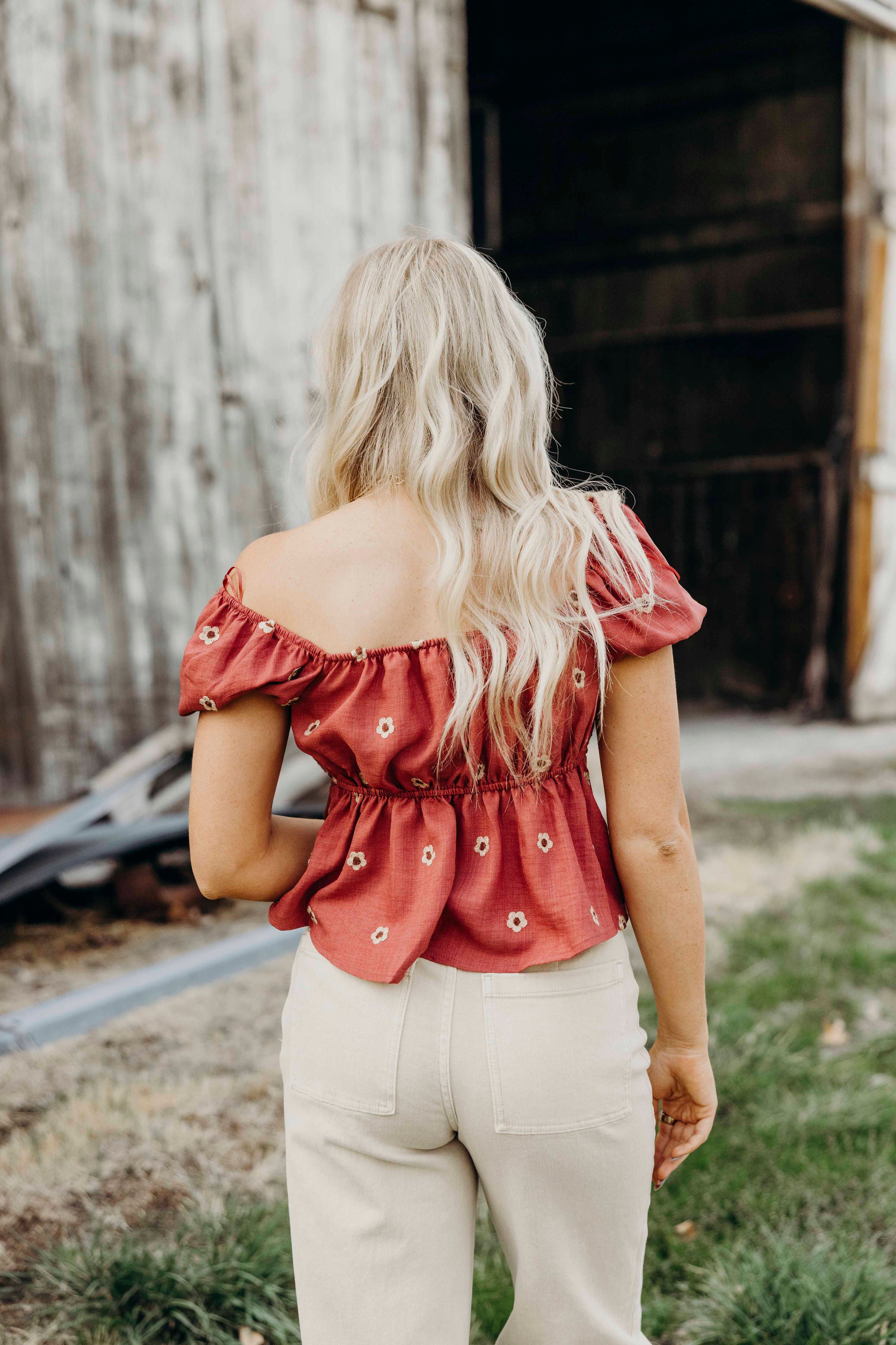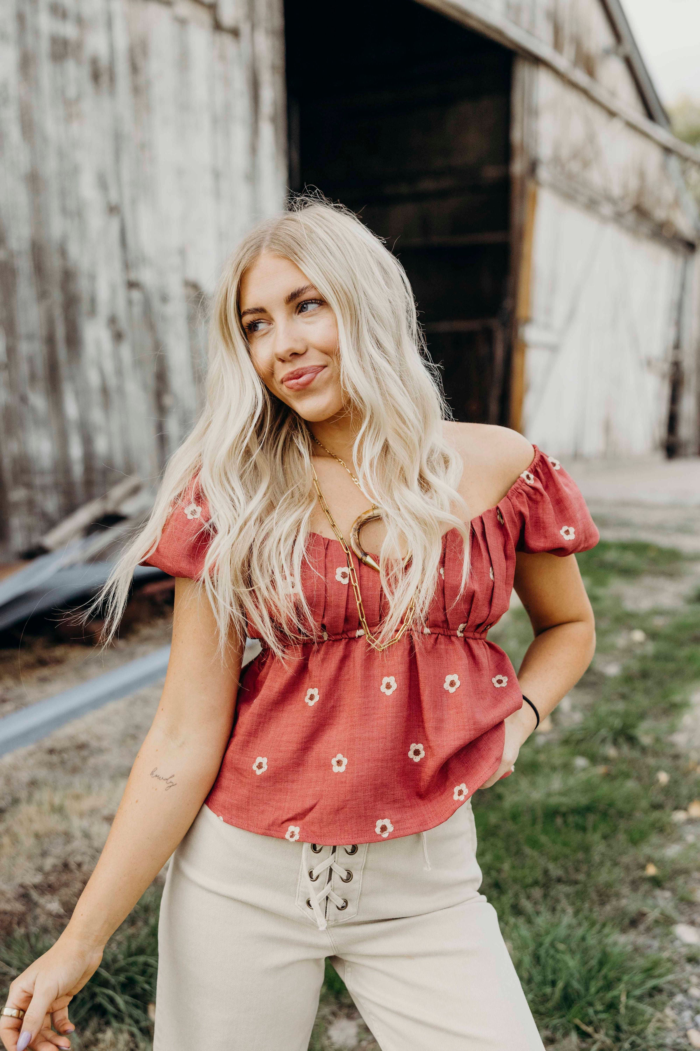 The Linden Blouse blends timeless western charm with modern style. Its cropped length and short puff sleeves create a flattering silhouette, while the pleated bust adds subtle texture. Featuring a round neckline and delicate floral print in warm sienna tones, this blouse is perfect for crisp fall days. Embrace a standout piece that effortlessly combines comfort and elegance for your seasonal wardrobe.