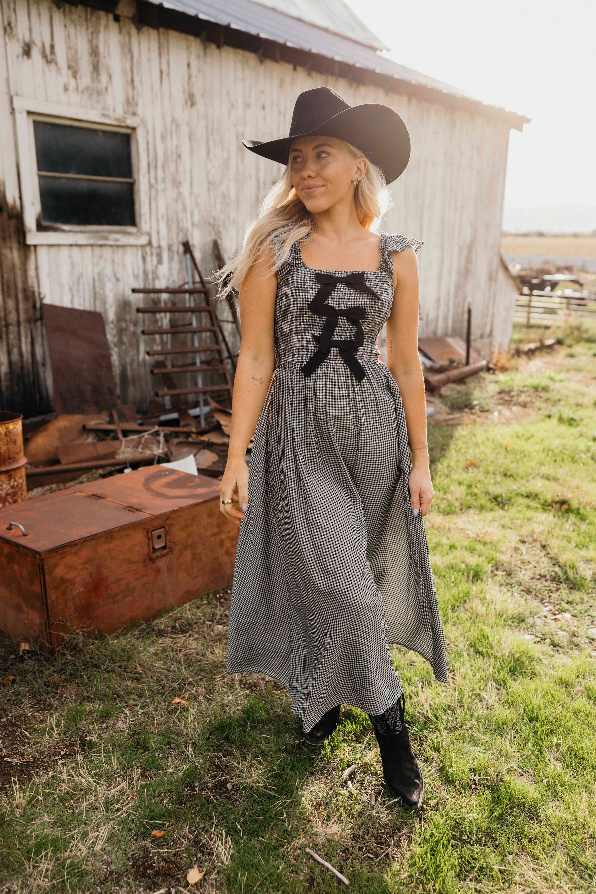 Embrace the season with The Mercy Dress, a black plaid western-inspired piece designed to flatter every figure. Its square neckline and short ruffle sleeves add a touch of vintage charm, while the smocked bodice ensures a comfortable fit. The front bow tie detail enhances its feminine appeal, and the flowing A-line silhouette with midi length makes it perfect for fall outings. This dress effortlessly combines classic style with modern comfort, making it an essential addition to your autumn wardrobe.