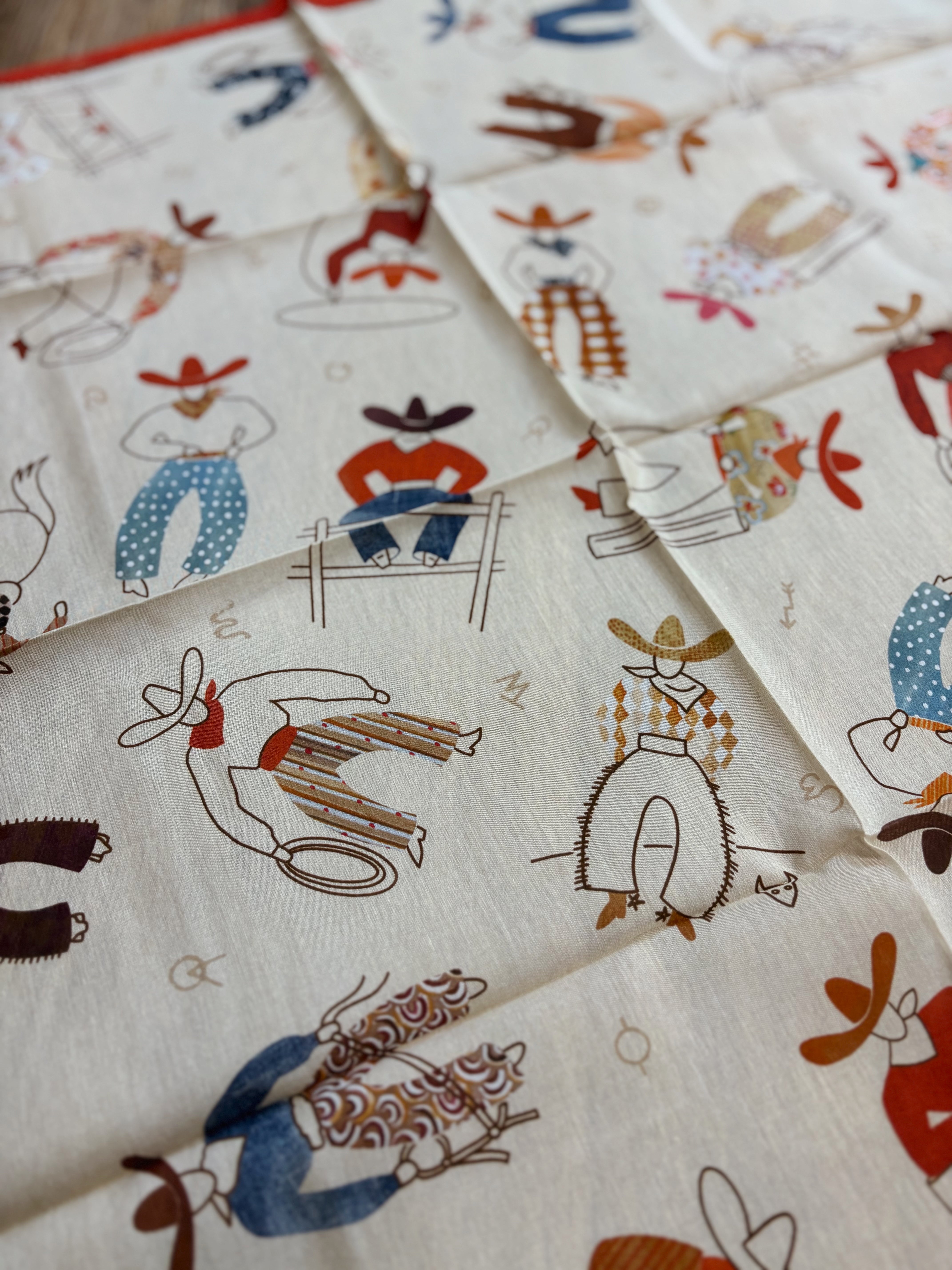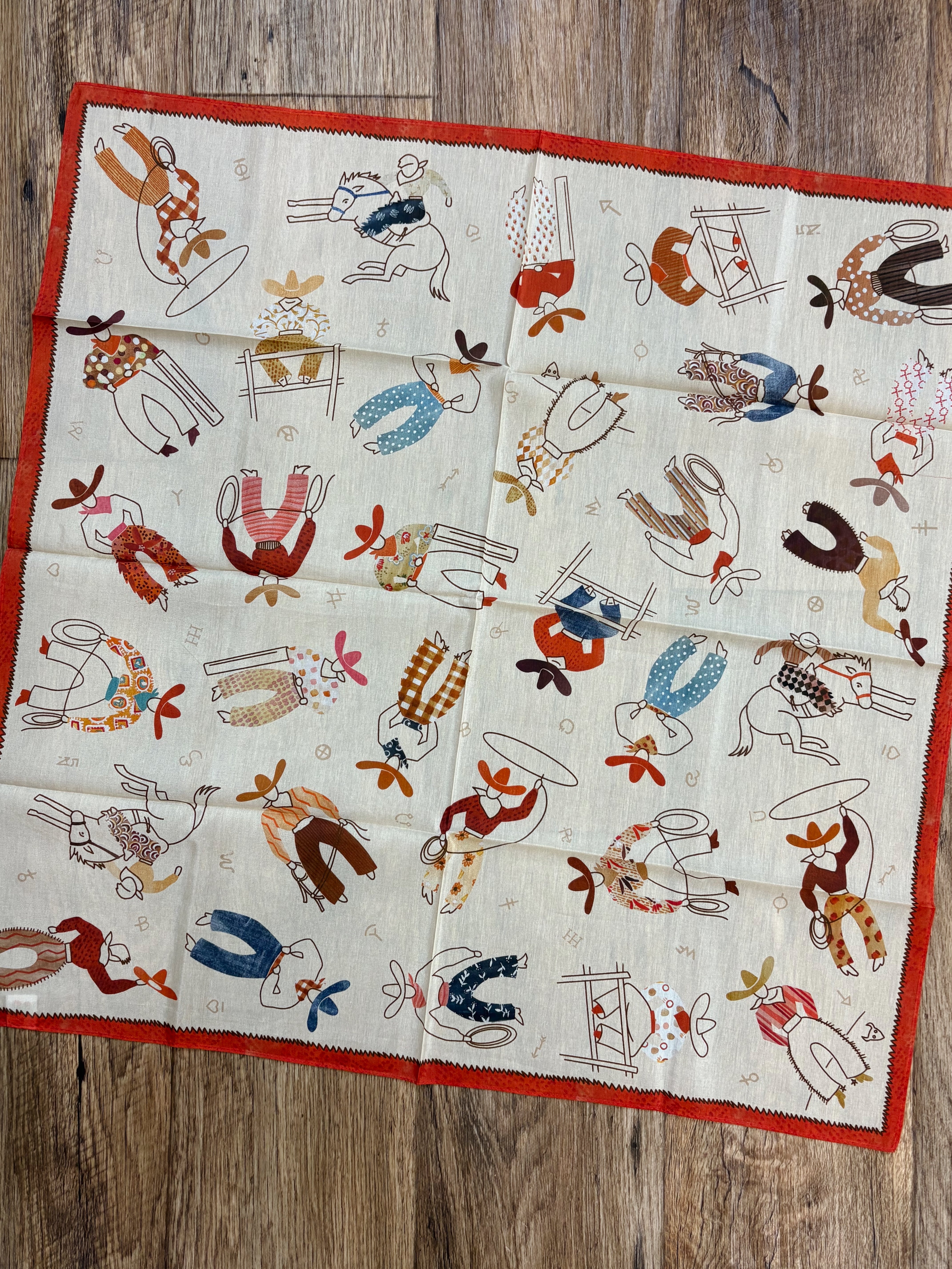 Embrace fall with the Way Out West Wild Rag, a stylish 26x26 inch accessory crafted from a luxurious 70% cotton and 30% silk blend. Featuring a charming stickman cowboy and bucking horse print framed by a striking red border on a warm beige background, this western-inspired wild rag adds a bold touch to any outfit. Designed by XOXOart & Co., it perfectly combines comfort and unique flair for the season.