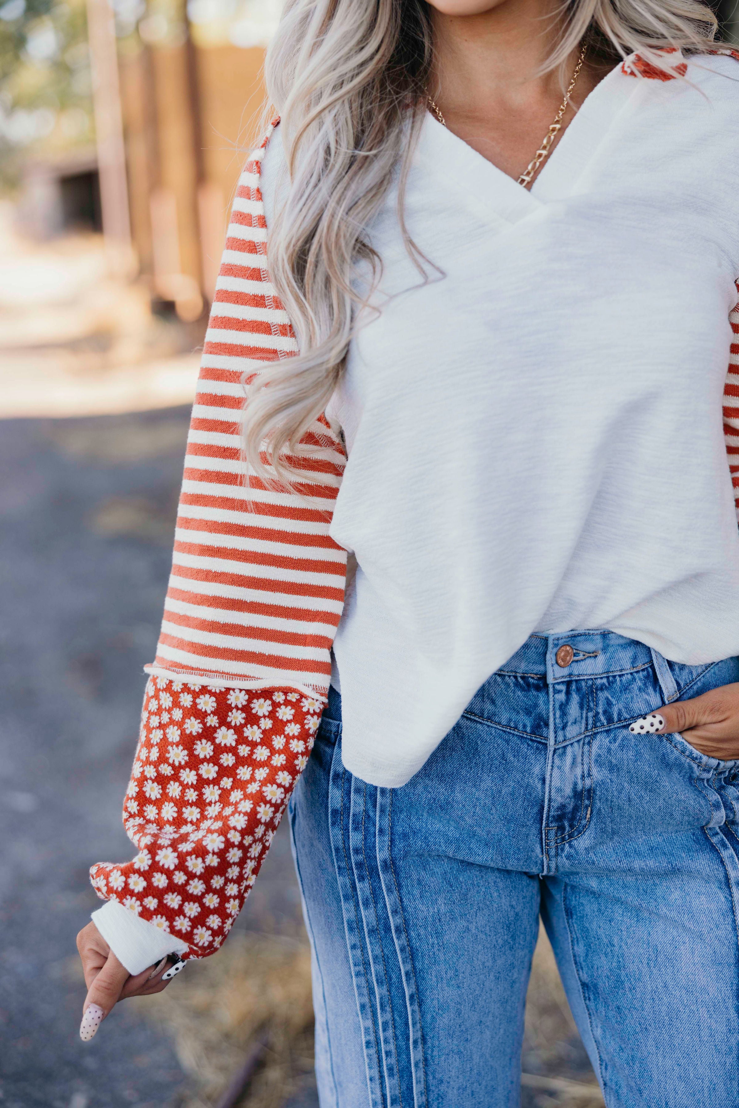 Embrace effortless style with the Autumn oversized knit top, featuring a charming floral and stripe pattern. Its split neck adds a subtle touch of flair, while long sleeves provide cozy comfort for cooler days. Perfect for casual outings, this top combines relaxed fit with eye-catching design to keep you stylish and comfortable all season long.