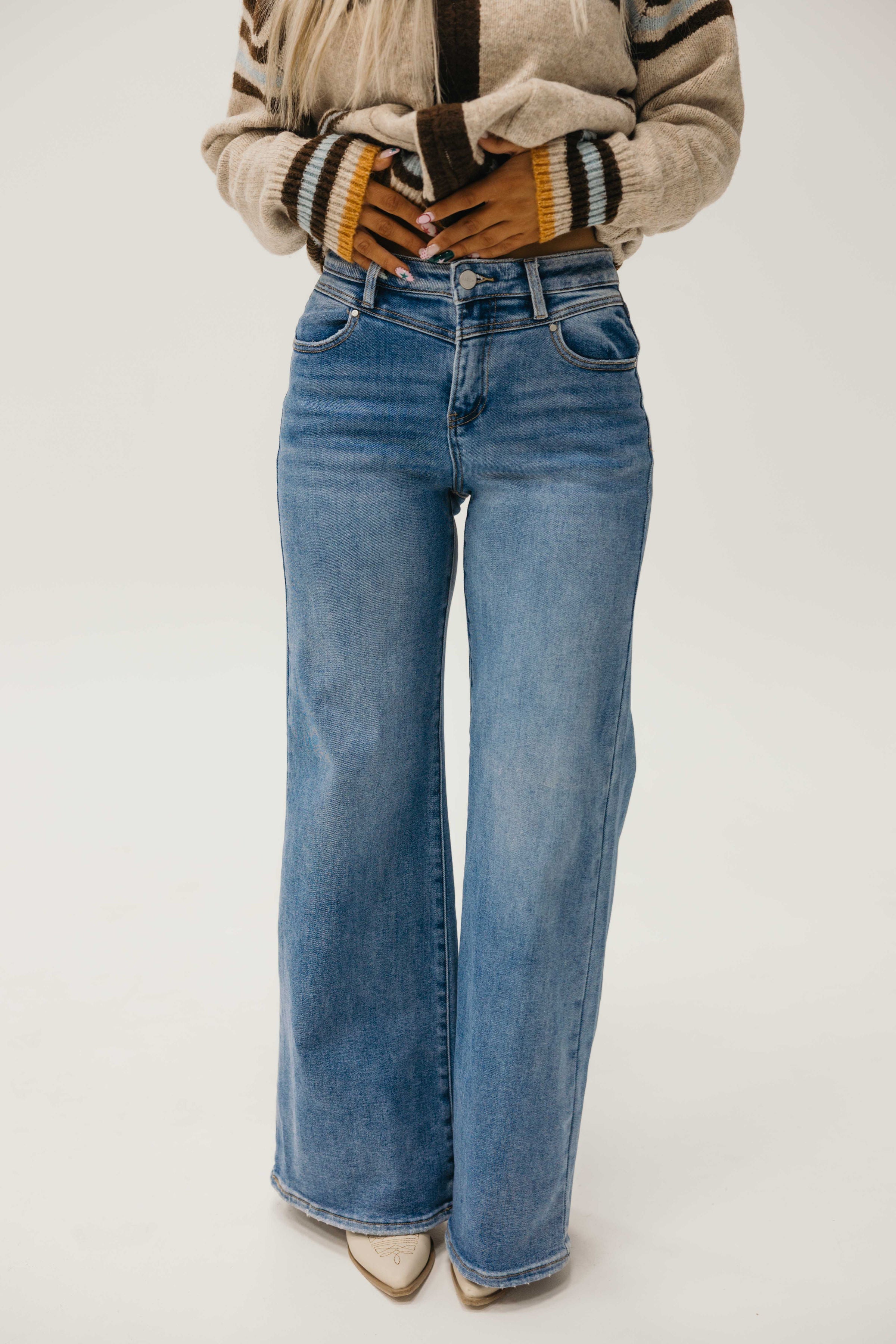 Elevate your denim game with Hayln Jeans, the ultimate high-rise wide-leg style that commands attention. Crafted in a flattering medium wash, these detailed jeans feature a generous front rise that provides comfort and a sophisticated silhouette. The wide-leg cut offers effortless movement while creating a polished, contemporary look that works from day to night. Perfect for those who refuse to compromise on style or fit, Hayln Jeans deliver the quality and design you've been searching for.