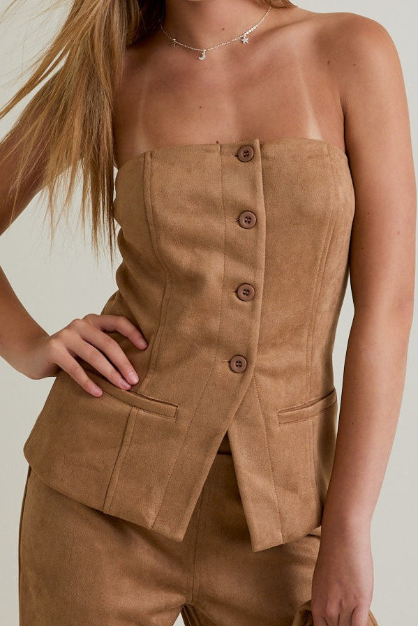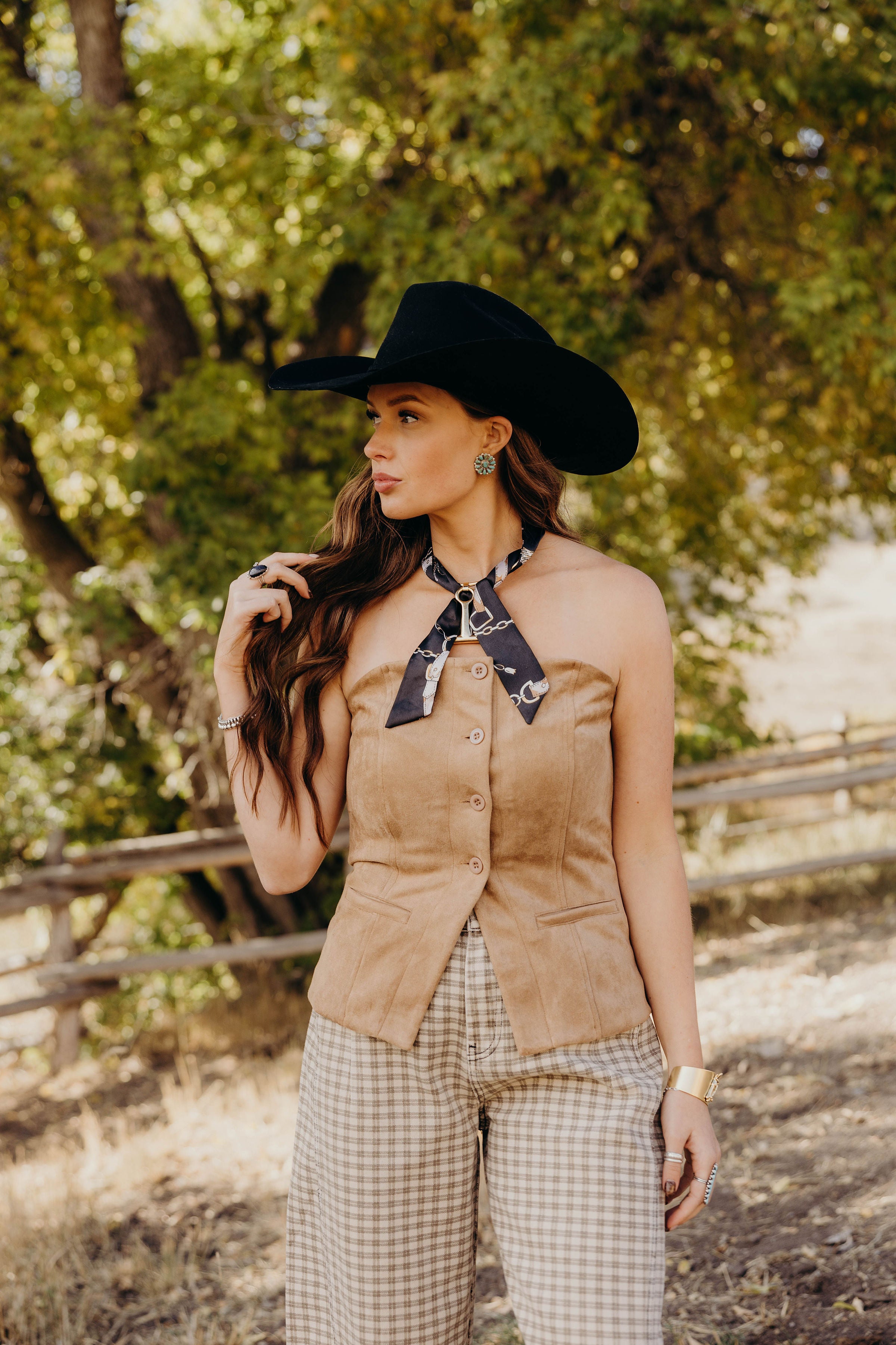 Step into winter rodeo season with the Golden Gamble Top—a camel suede western shirt designed to impress. This button-down features sharp blazer details, blending classic western style with refined tailoring. Perfect for a night in Vegas or the NFR, it offers warmth without sacrificing style, making it your go-to piece for iconic events. Elevate your look and embrace the spirit of the season with this standout top.