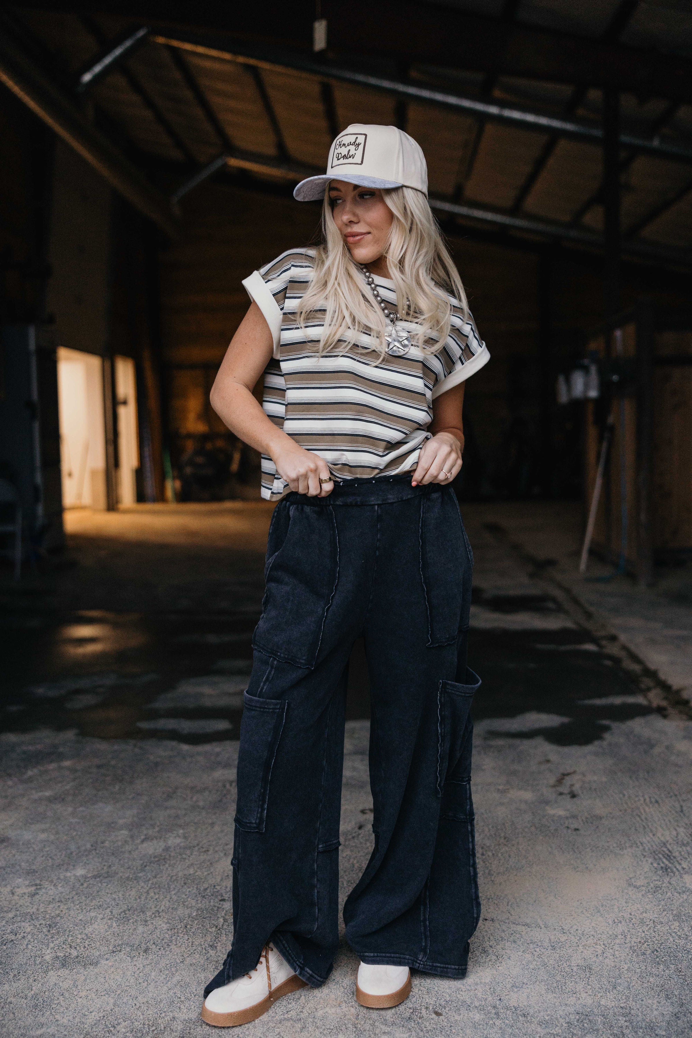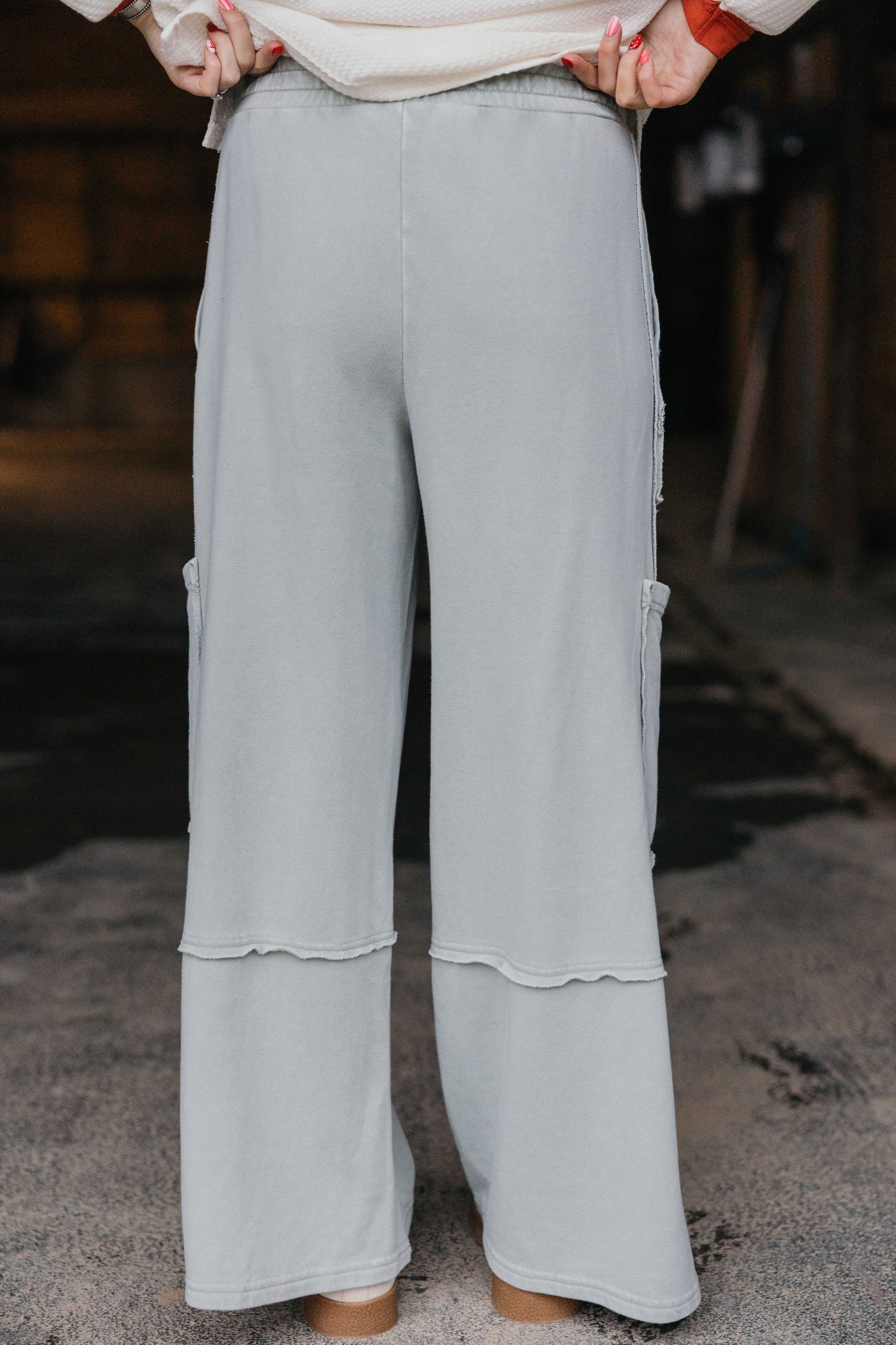 Introducing the Pembrooke, cargo pants that refuse to play it safe. Crafted from buttery soft fabric, these high rise beauties feature a raw edge elasticated waistband and multiple patch pockets with that same edgy finish. The dramatic wide leg silhouette flows all the way to the floor, giving you major runway energy without the pretension. Style them with a fitted crop top and platform sandals for an effortlessly cool vibe that says you know exactly what you're doing. Because sometimes the best outfits are the ones that make you feel like the main character.