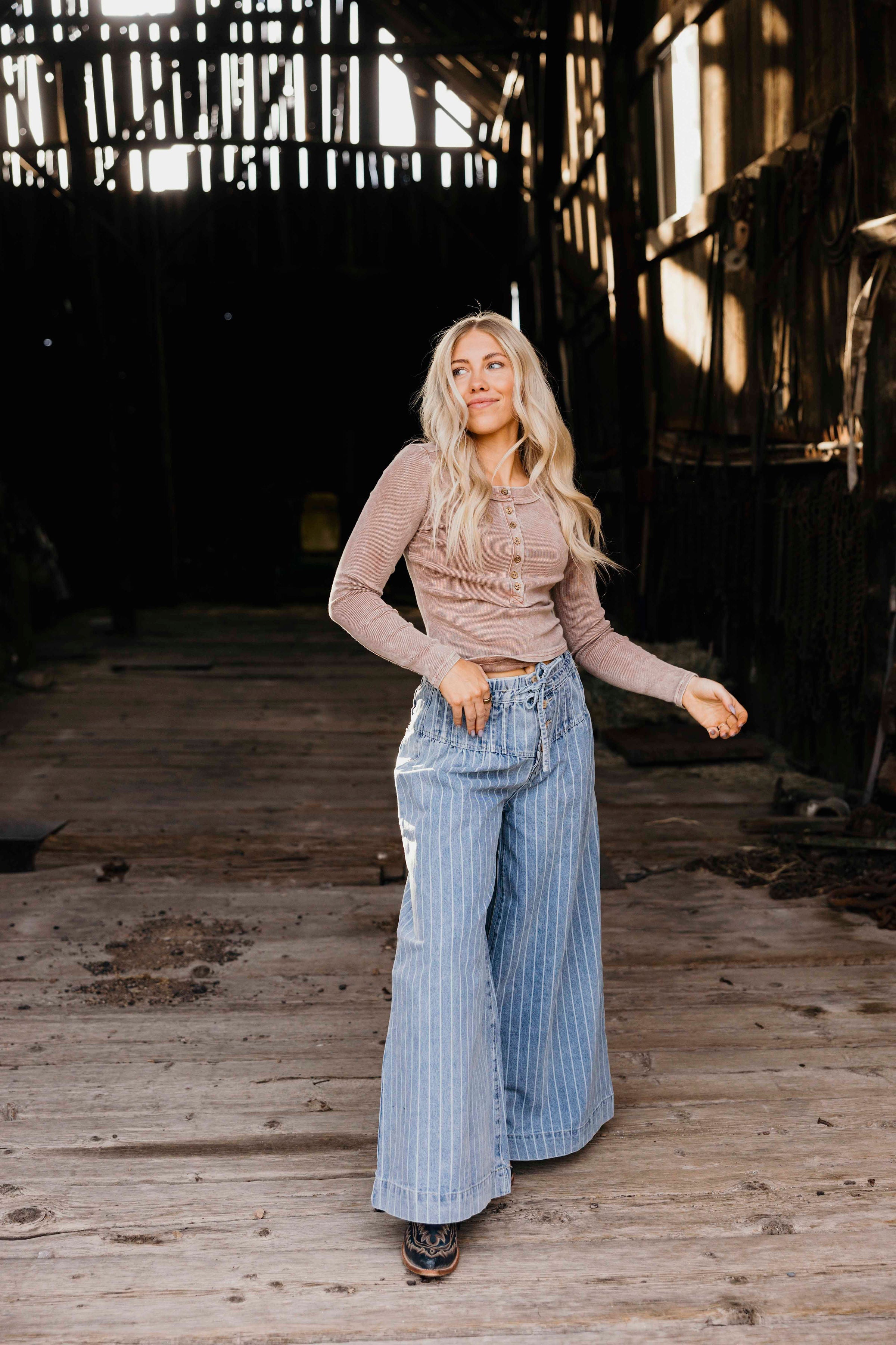 The Calhoun Top combines a stylish henley neckline with a half-button design for effortless layering. Crafted from ribbed knit fabric with a vintage acid wash, it offers a comfortable, fitted silhouette perfect for fall. The long sleeves provide warmth while maintaining a sleek western-inspired look, making it ideal for both casual outings and cozy evenings. Elevate your autumn wardrobe with this versatile and flattering top.