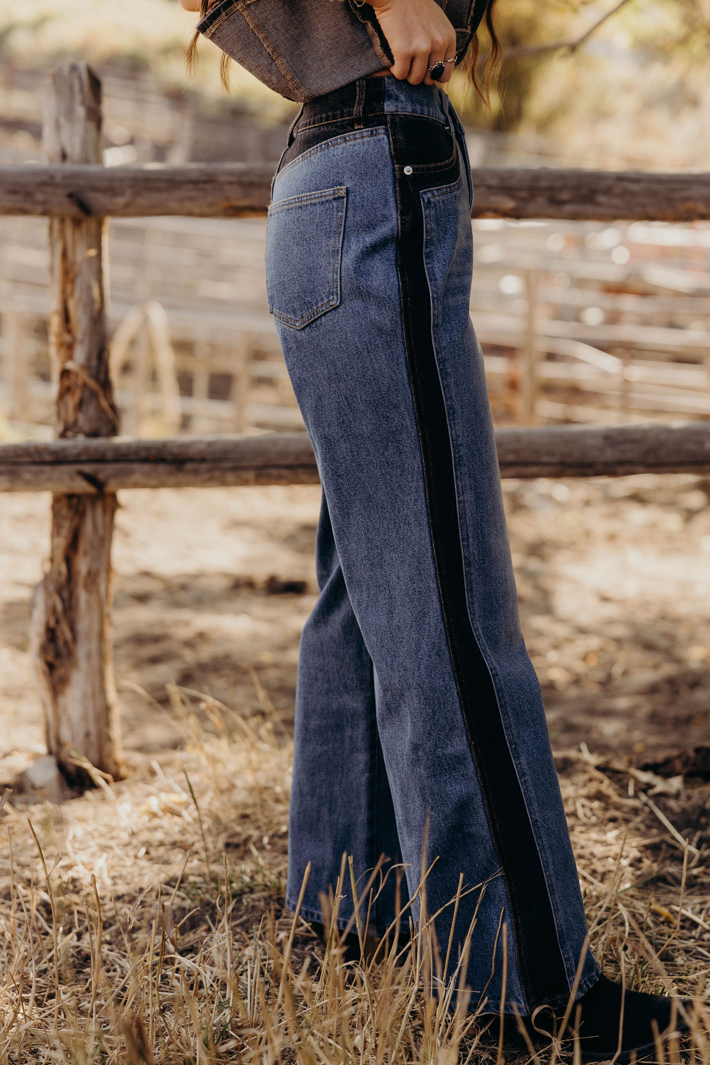 The Dakota Jeans feature a medium wash and mid-rise design, combining classic western denim with a modern two-tone contrast panel for a distinctive look. Their structured fit ensures a tailored silhouette that enhances comfort and style. Perfect for those seeking durable jeans with a refined edge, these jeans blend traditional craftsmanship with contemporary detailing.