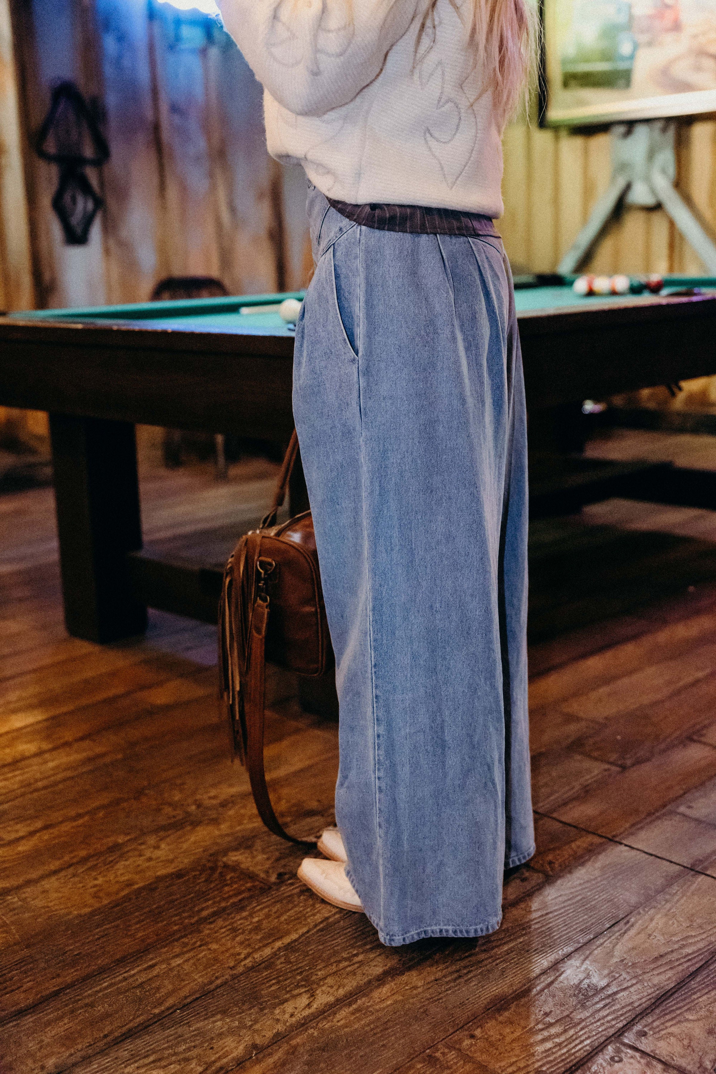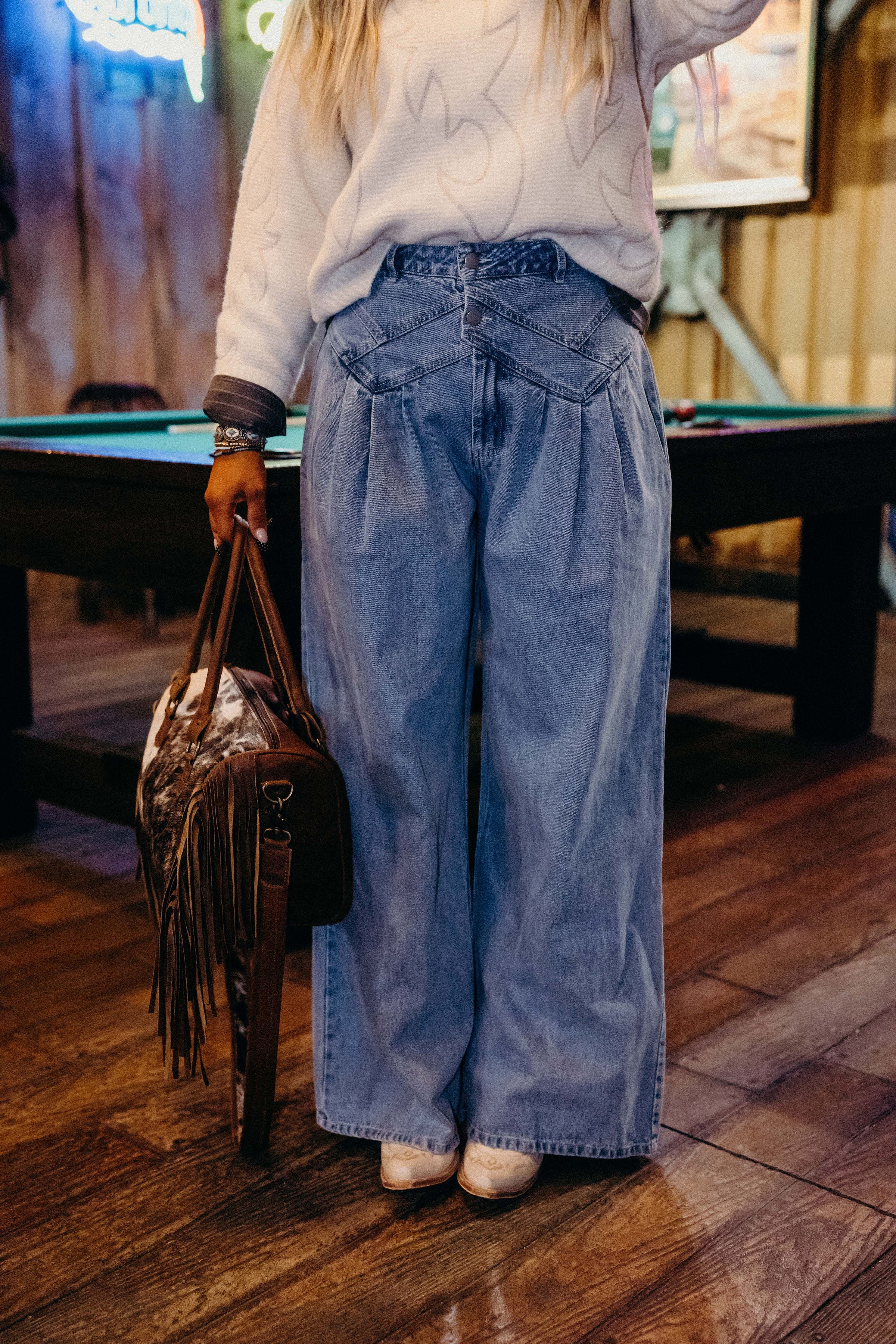 Step into winter with The Rustler Pants—your new favorite high-rise denim with a wide-leg fit that’s equal parts cozy and cool. Crafted from light denim with signature yoke detailing, these western-inspired pants bring effortless style to chilly days. Perfect for NFR vibes or everyday wear, they mix classic ruggedness with modern comfort for all your adventures.